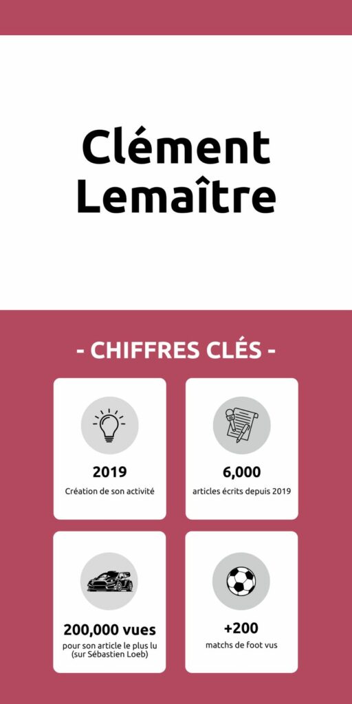 Spécialiste du football (75 % de son activité), Clément aime aussi couvrir d’autres sports, comme le tennis, et donner des cours de journalisme à l’École de Journalisme de Normandie.
